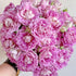 Features densely packed, cup-shaped flowers that range from light pink to magenta, gradually turning to soft lavender. The large, frilly flowers resemble chrysanthemums and emit a medium fragrance.