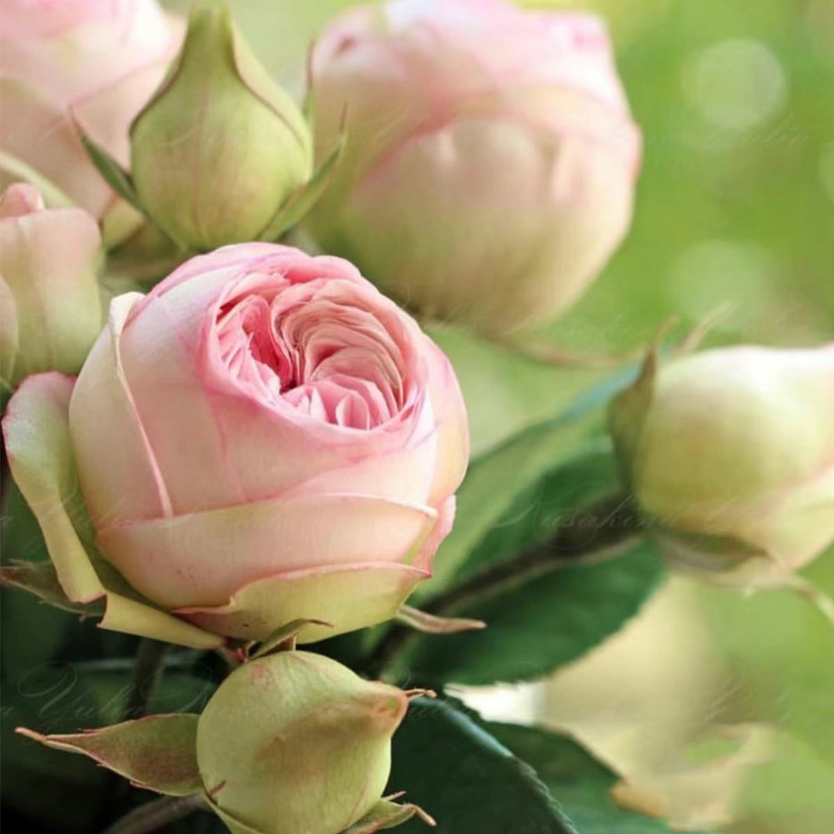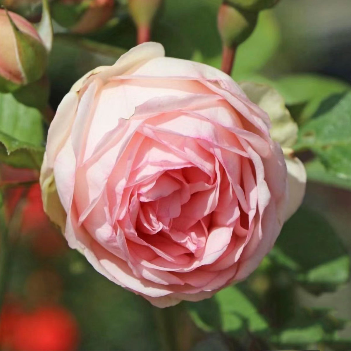 Features soft pink and white flowers that start spherical and later become cup-shaped with a light aroma. This compact, disease-resistant shrub has glossy green leaves and is very rain-resistant.
