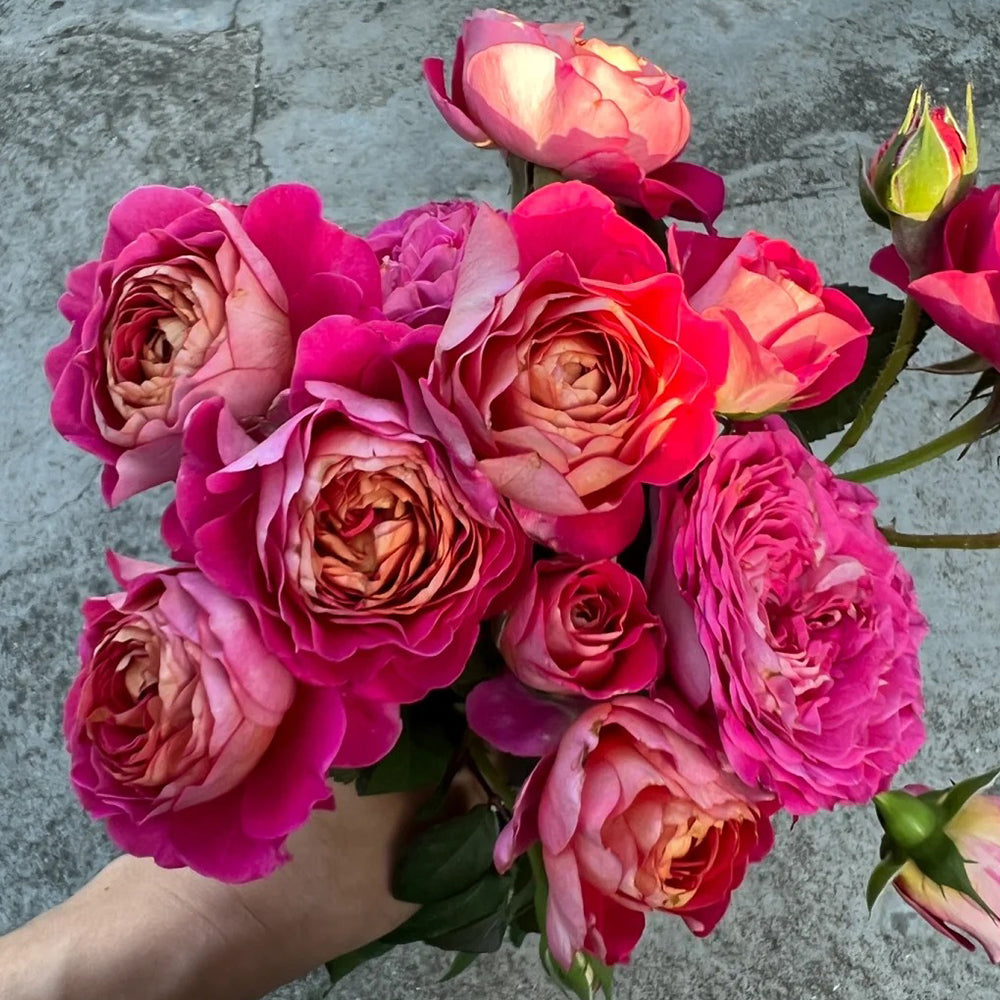 Florist roses are typically bred for cut-flower use — they have long, straight stems, large symmetrical blooms, and a longer vase life, making them ideal for bouquets and arrangements. Garden roses, on the other hand, are grown for planting outdoors — they offer a wider variety of shapes, colors, and fragrances, often with more petals and a softer, more natural look, but they usually have shorter stems and a shorter vase life compared to florist roses.