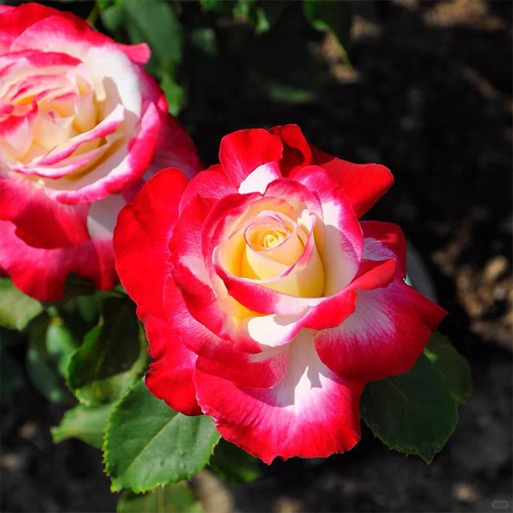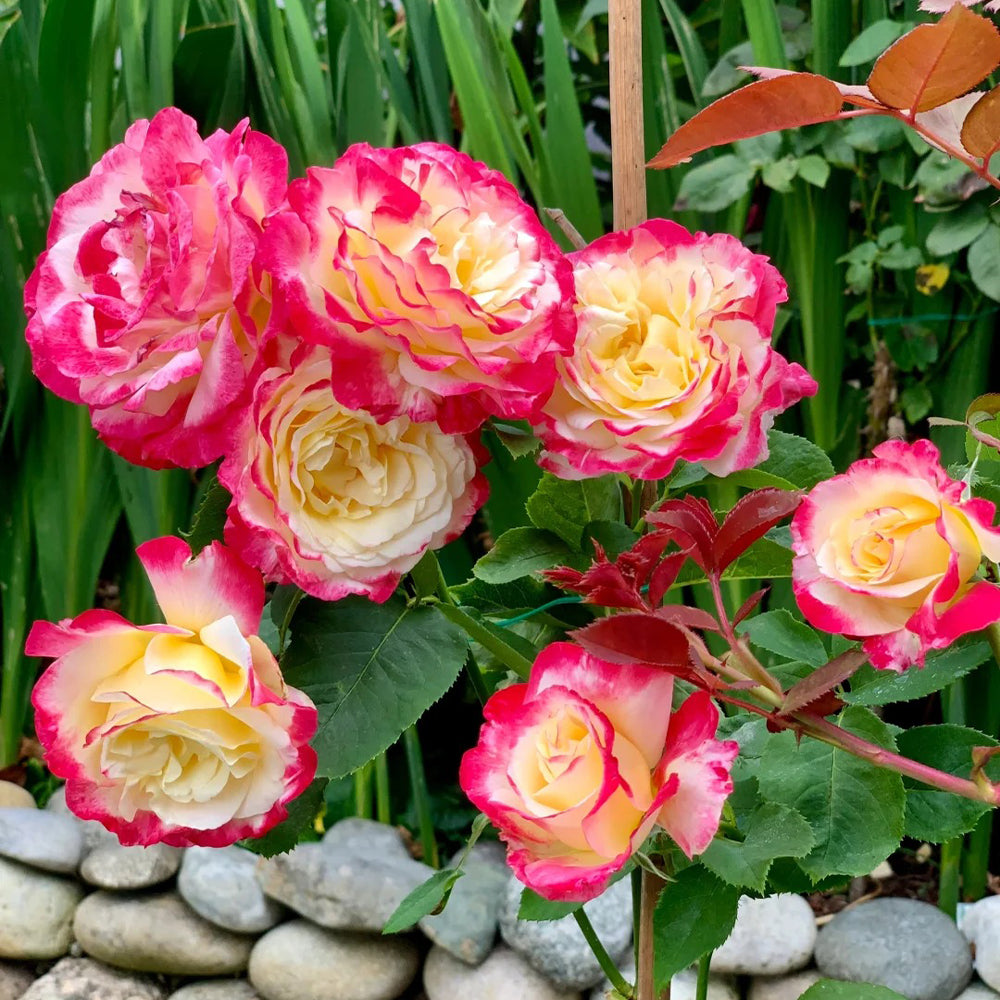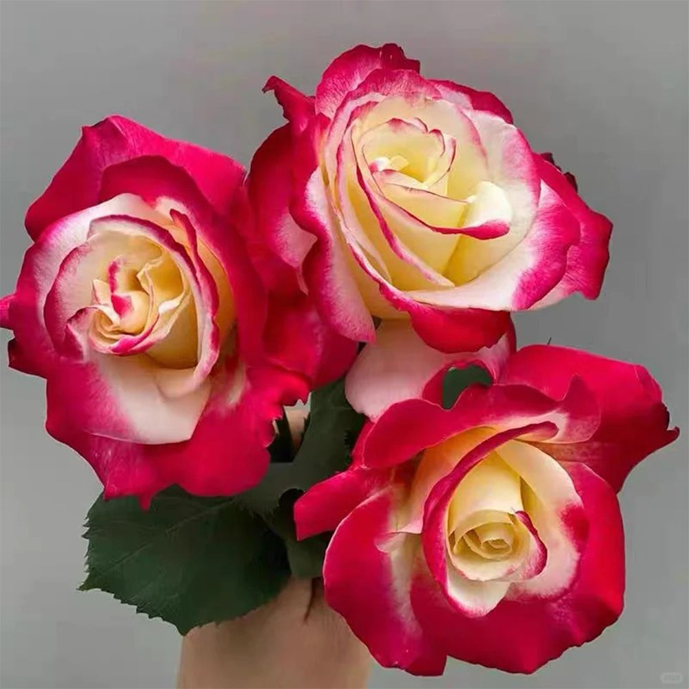 This stunning rose stands out with its beautiful double blooms, showcasing a rich creamy white base with striking strawberry-red edges. Its strong, captivating fragrance and unique color combination make it an instant focal point in any garden. The blooms perform best in warm days and cool nights, adding timeless elegance and charm.