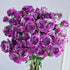 This stunning rose features vibrant purple blooms with striking white stripes, creating a bold visual contrast. It flowers in small clusters with a strong, sweet fragrance. A truly eye-catching variety, it adds charm and elegance to any garden or floral arrangement.