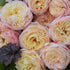 This unique rose features plump, rounded blooms with a rich fruity fragrance, reminiscent of lychee and peach. The flowers open from red buds into creamy yellow petals with a soft red-to-pink gradient, resembling a sweet peach when half-open. It thrives in high summer temperatures and adds a delightful charm to any setting.