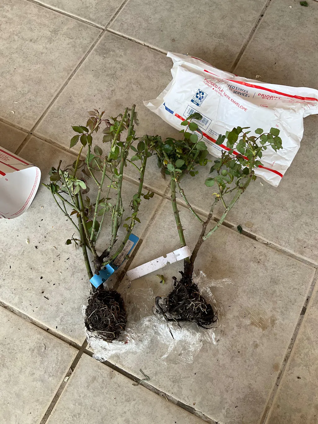 The roses arrive with rootballs wrapped in plastic, you’ll need to up-pot right away. Don’t let that scare you, they really take off after potting!